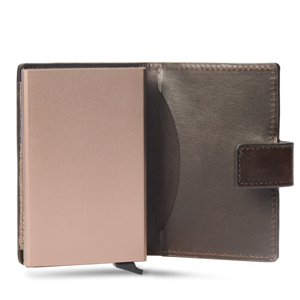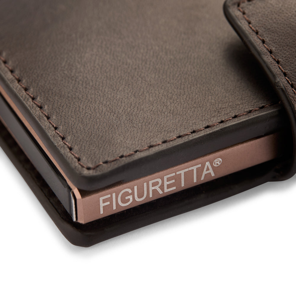 En kortholder i ægte Italiens vegetabilsk garvet læder, produceret og udført i lækre materialer Med baggrund i Figuretta Cardprotector, er Mini Wallet en lille kompakt sikker tegnebog. Udover plads til 4-6 kort i Cardprotector, har den yderligere plads til endnu flere kort, sedler, bon'er, forretningskort Mini Wallet er kompakt og på grund af trykknaplukningen velegnet til at have liggende i tasken, jakken, eller bukselommen.Cardprotectoren beskytter dine seks vigtigste kort, både mod at blive bøjet eller knækket og mod, at dine RFID-kort scannes. Rummer op til 4-6 kort i cardprotectoren og op til 4 kort i side lommerne
